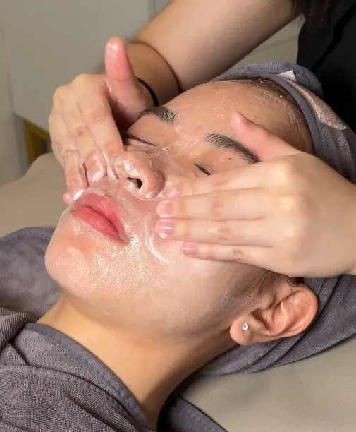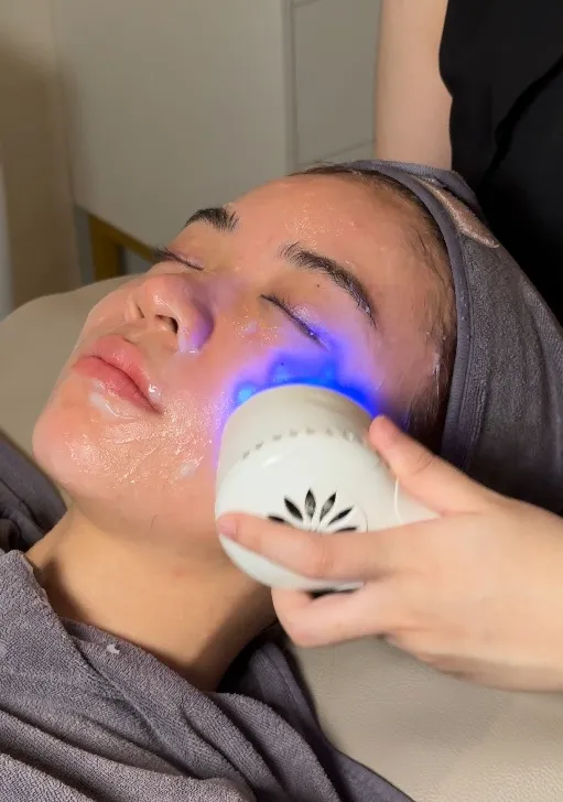We use a professional cryo machine to instantly cool and soothe the skin. This step helps reduce redness, calm any sensitivity, and accelerate recovery.
